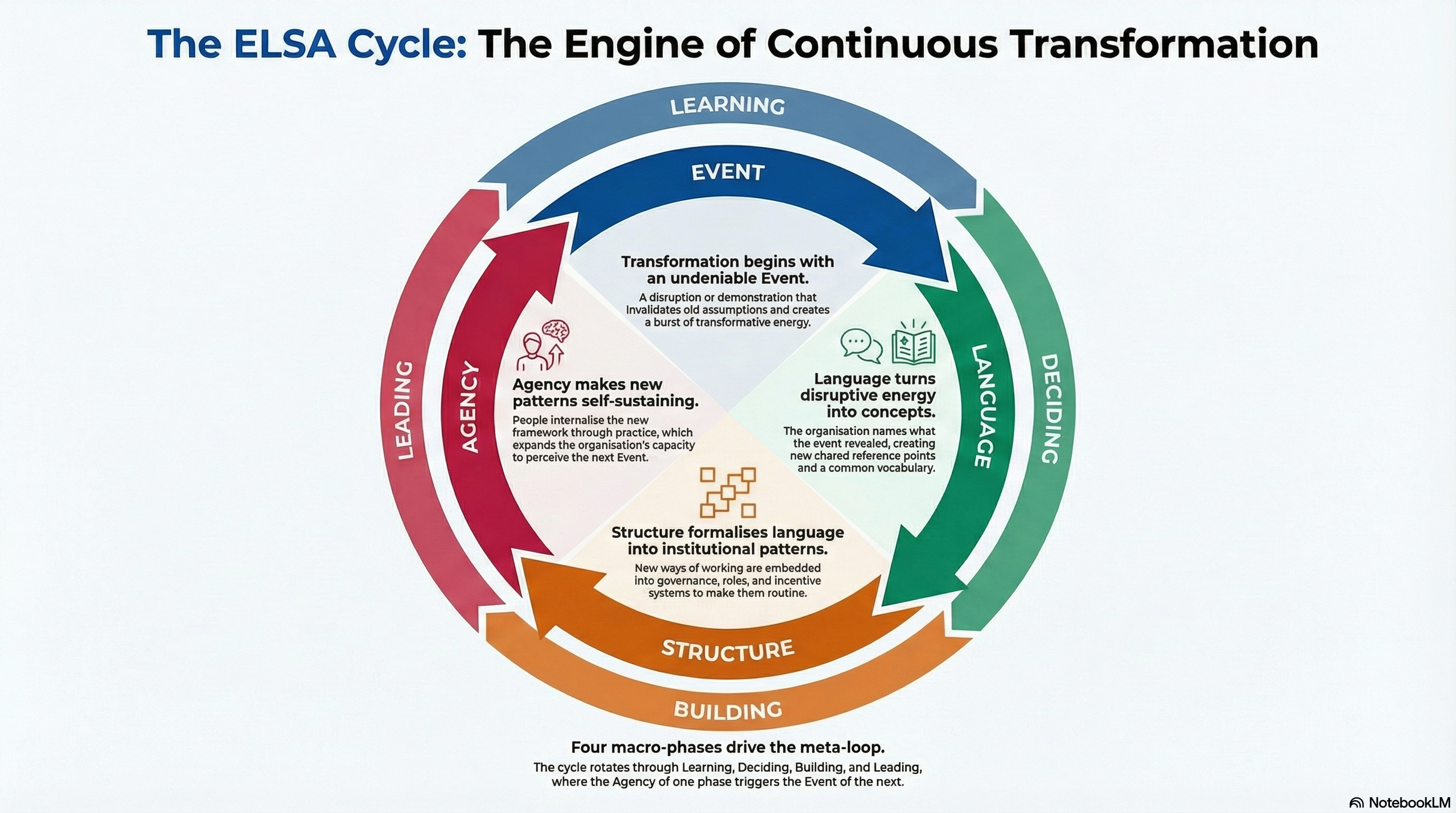 An organisation that has successfully navigated one complete Learning ELSA cycle has not merely survived a disruption. It has expanded its capacity to perceive and respond to the next one.